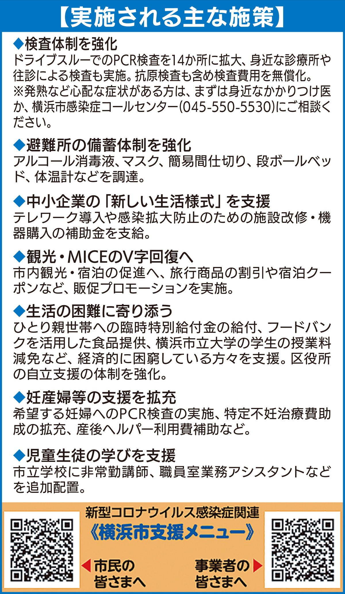 具体的にはPCR検査体制の充実や避難所での感染症対策強化、中小企業の「新しい生活様式」対応の助成金拡充などが盛り込まれています。
