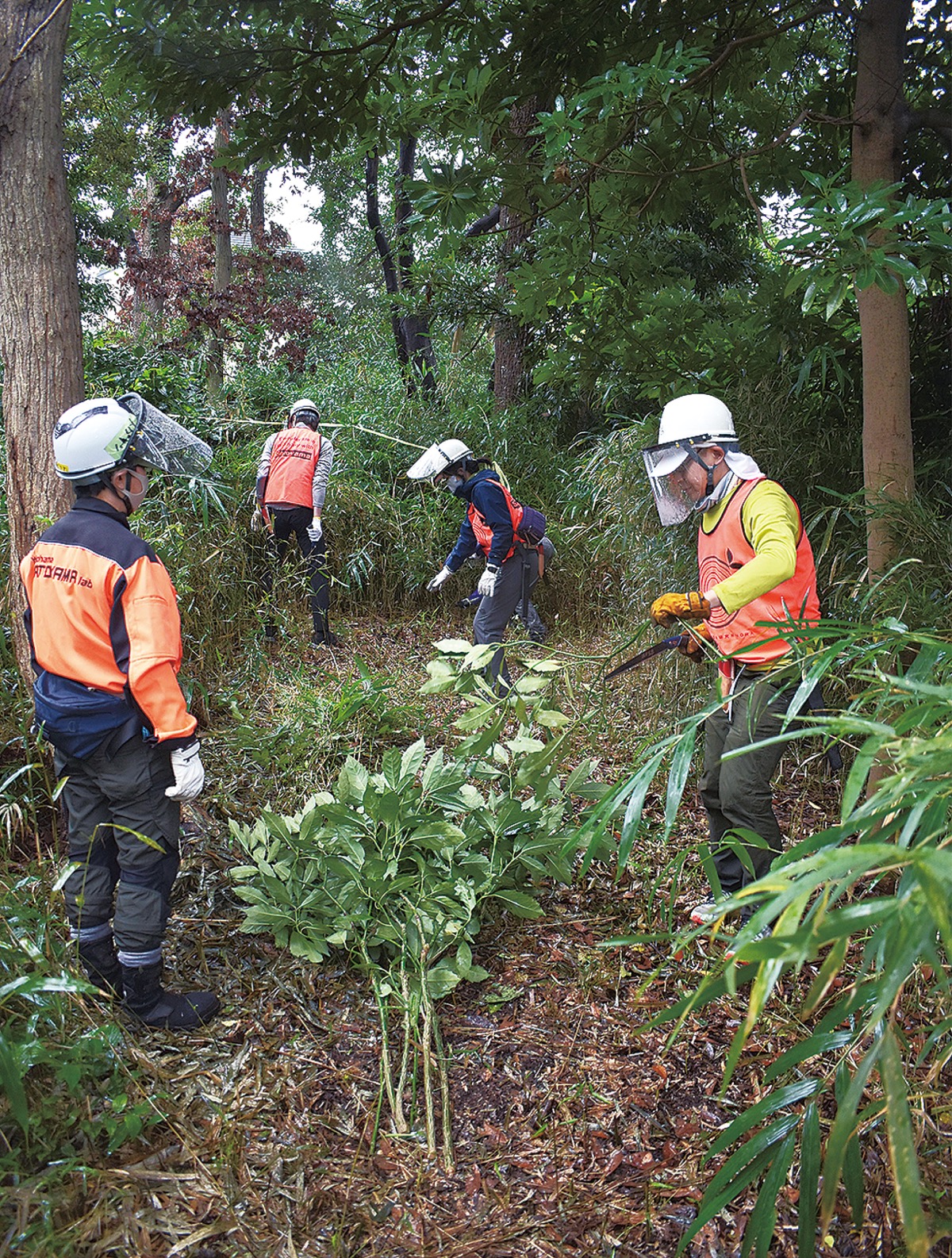 ボランティアは近隣住民のほか、中には都内から参加した人も。常緑樹の刈り取りを体験した女性は「草木の熱気を感じられていいですね」と話していた。