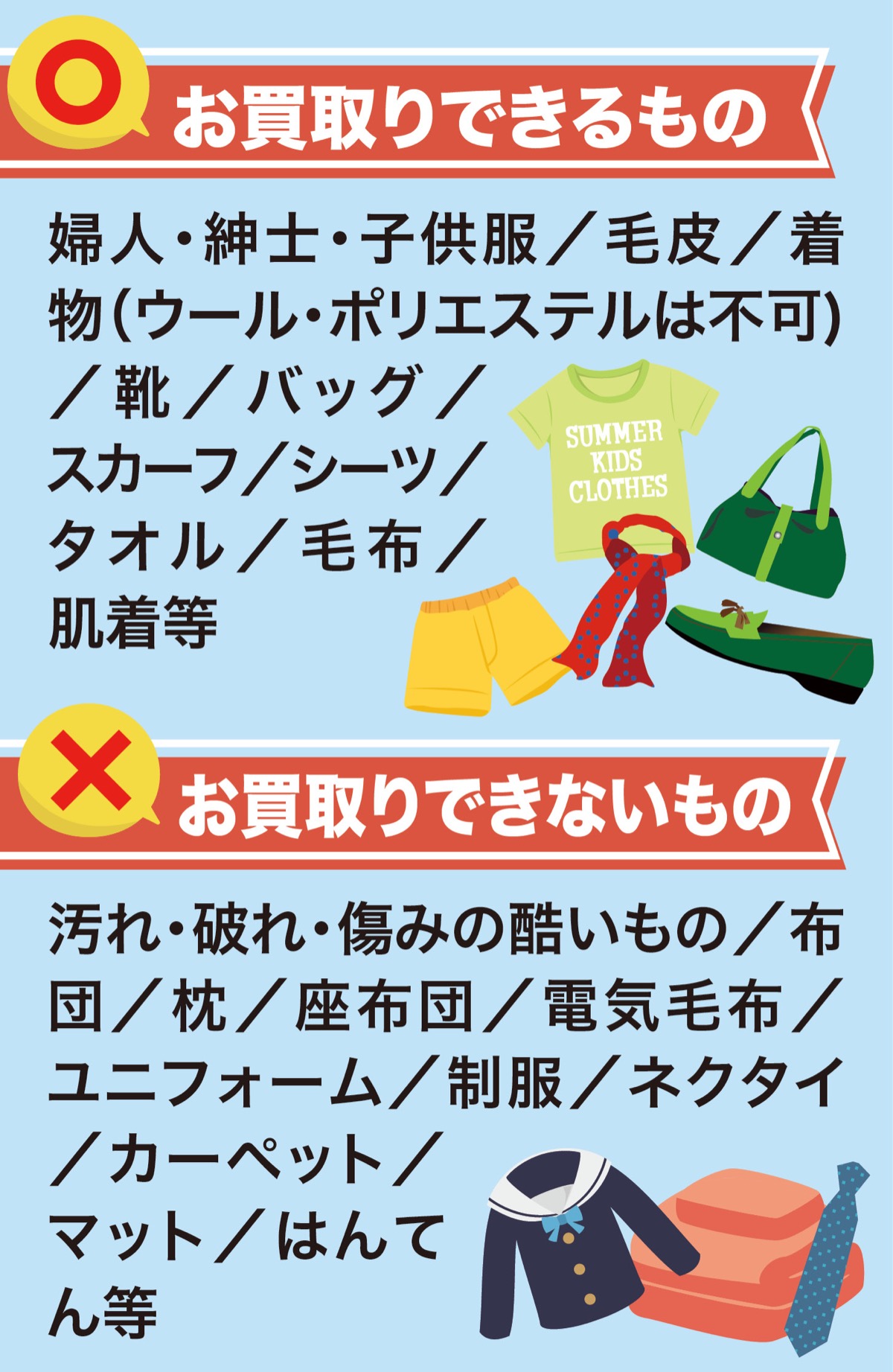 衣料品のリサイクル業を専門に泉区で創業50周年を迎える同社。古着として店頭に出せない物は海外へ輸出したり、工業用の雑巾等に加工。どんな衣料品も無駄なくリサイクルするので、思い入れのある服も罪悪感なく手放せそうだ。