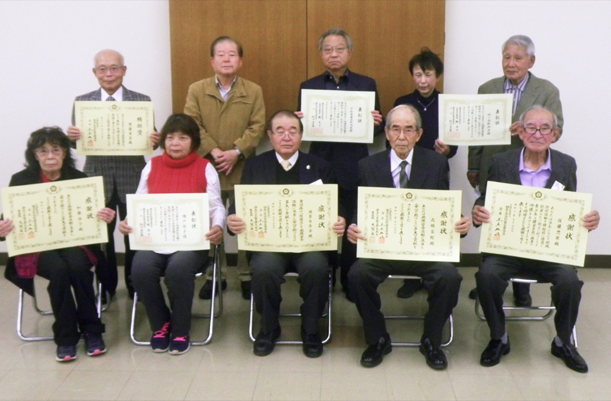 (公社)神奈川県防犯協会連合会会長精励賞/黒澤常吉(泉防犯協会)、同会長感謝状/佐藤忠栄(泉防犯指導員連絡協議会)、同会長・神奈川県警察本部長連名感謝状/【団体】領家自治会(萩原勝彦会長)【個人】加藤治子(泉防犯指導員会)、高橋富郎(同)