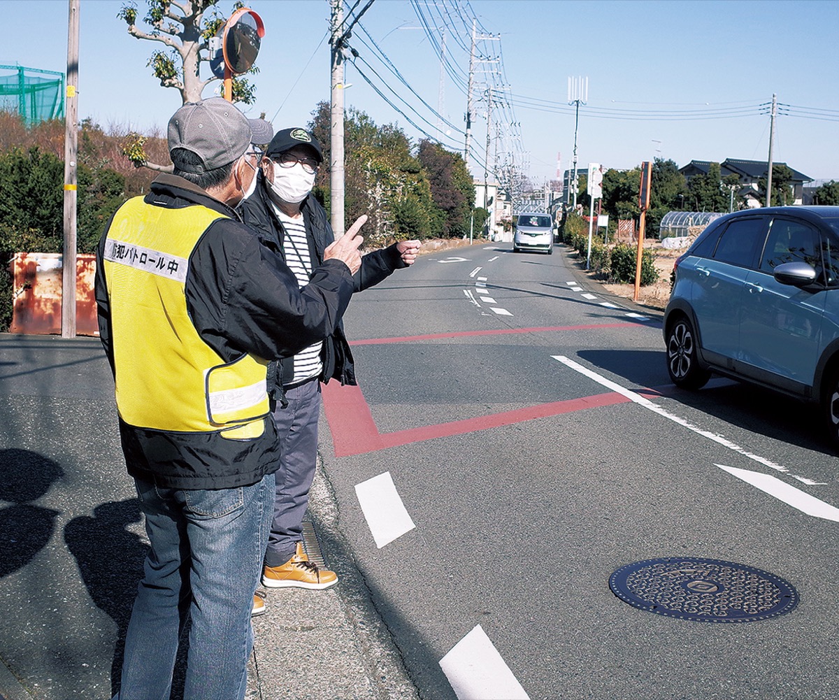 「地域の課題を把握し、住民が主体となって解決策を導くまでが地域自治」と小塚会長。昨年11月には町内会として泉警察署や土木事務所に安全対策の必要があることを説明。また同町内会の企画部が中心となった危険箇所の見守りや、泉警察署交通課の署員らを交えた夜間の調査検分を実施した。