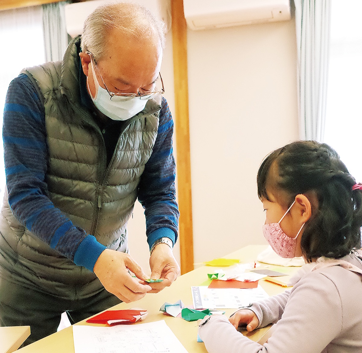 講師を務めるのは日本折紙協会の常務理事で、折紙師範の永田文夫さん。「子どもたちに四季を身近に感じて欲しい」と毎月、季節に合わせたテーマで作品づくりを行っている。