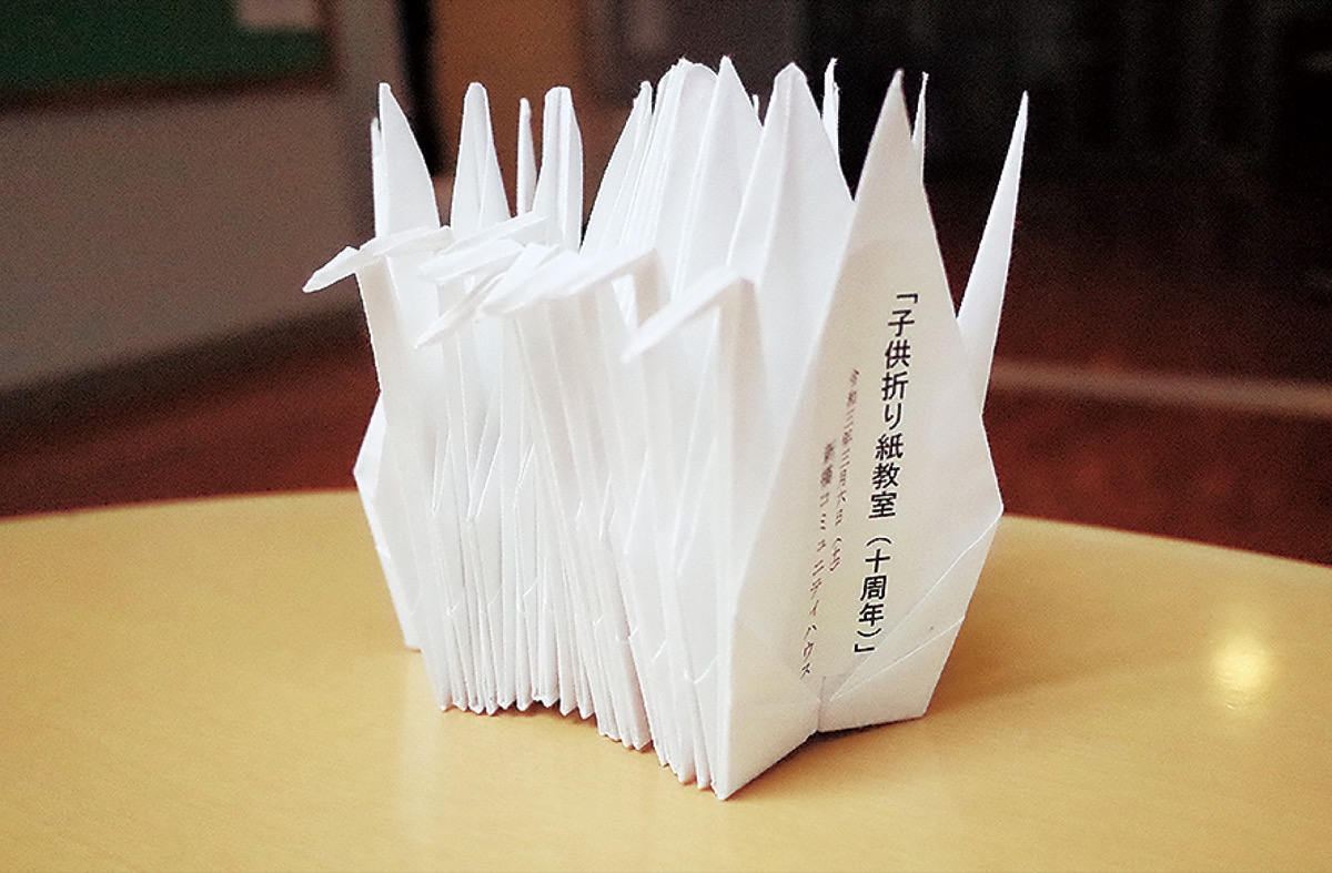 新橋コミュニティハウス(新橋町33の1)で毎月第1土曜に開かれている子ども折り紙教室。2011年に開講し、今月で10周年を迎えた。