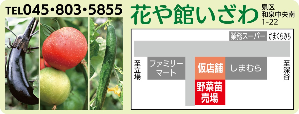 「農家さんが買いに来るお店」として地域に親しまれる和泉中央南の花や館いざわ(かまくらみち沿い・「しまむら」隣)に、新しく野菜苗の特設売り場が増えた。
