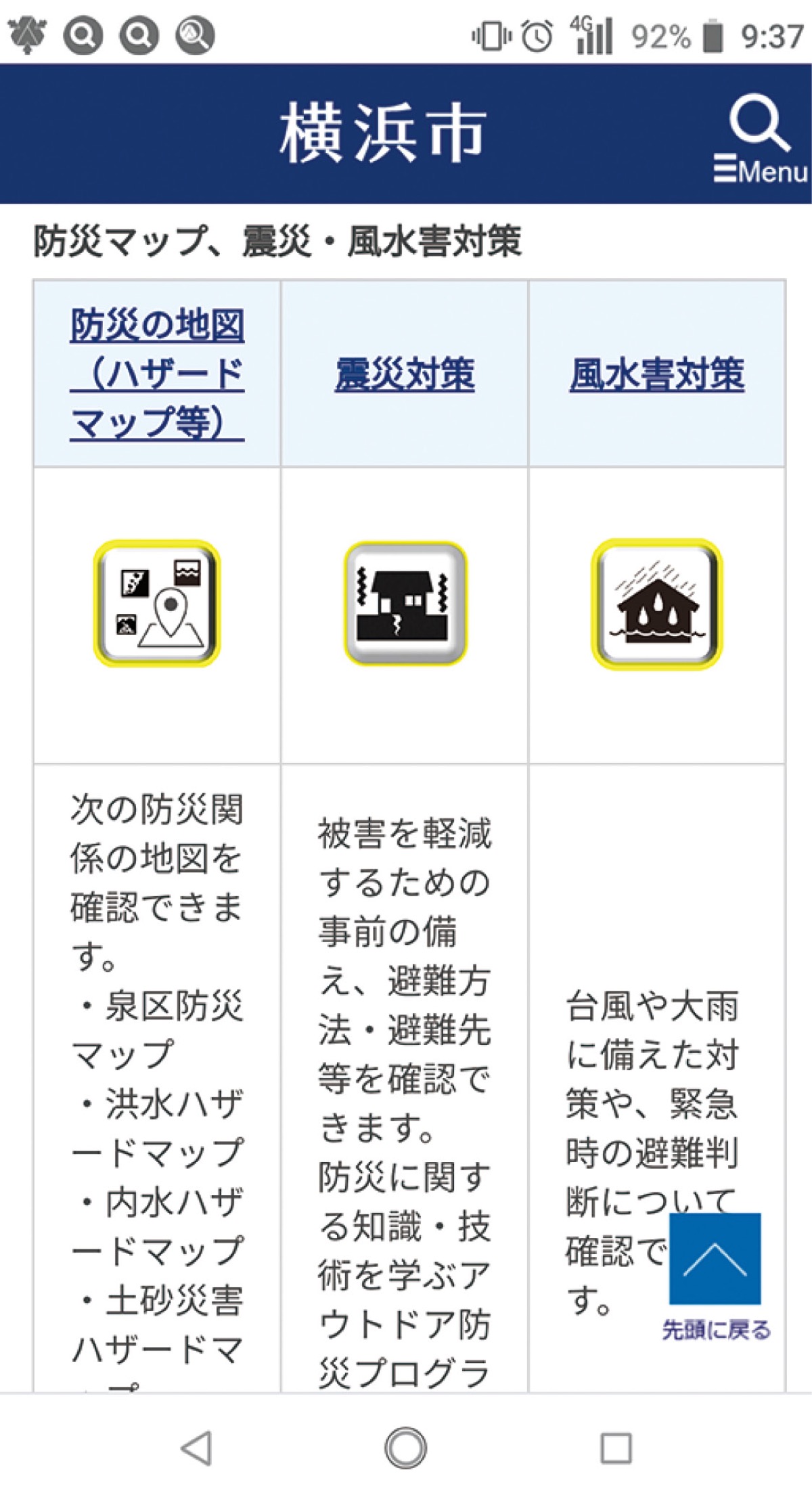 全国的に風水害の多いこの時期。泉区役所のHP(https://www.city.yokohama.lg.jp/izumi/)では「泉区防災情報」のポータルページを設け、災害情報をまとめている。