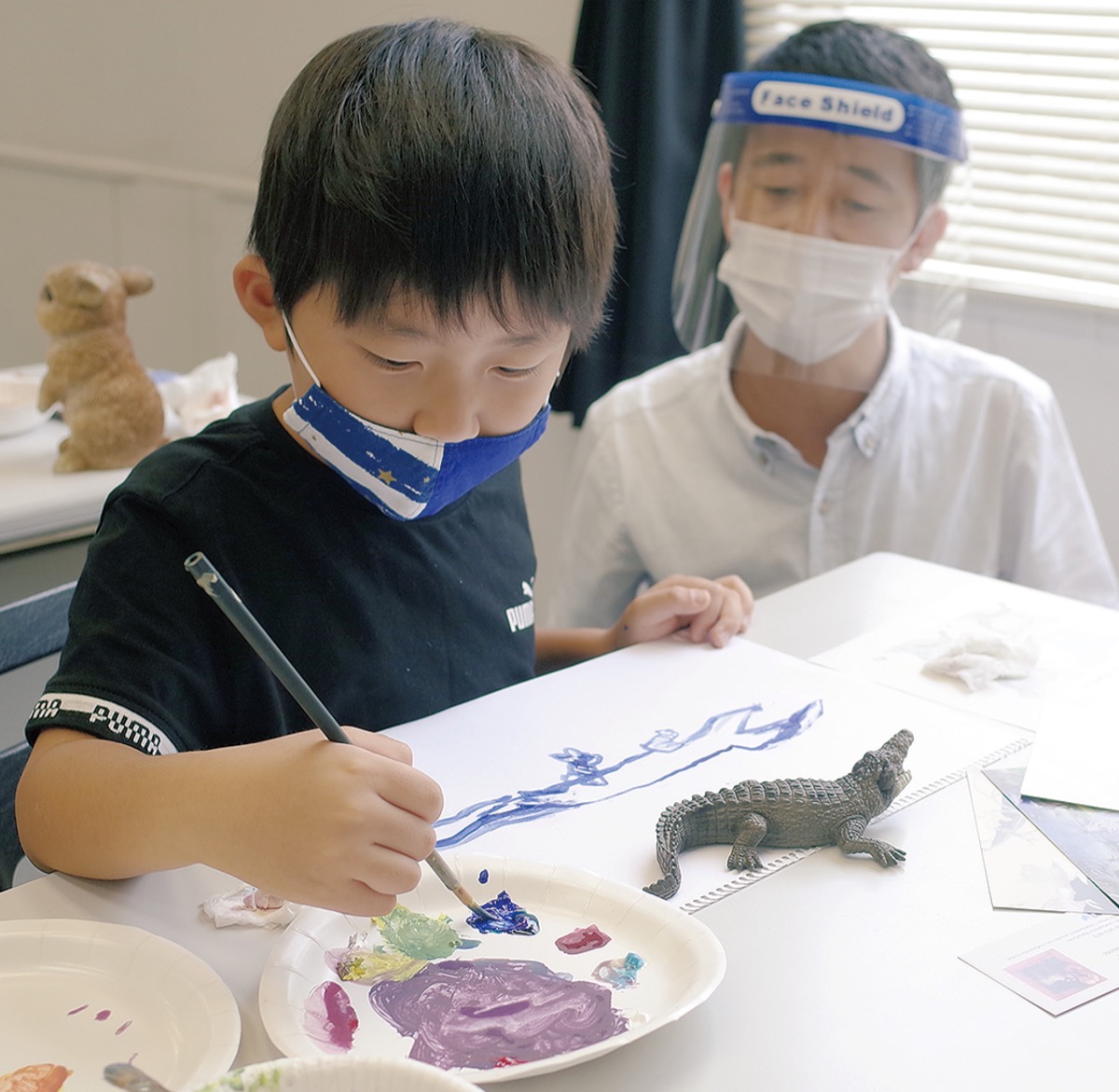 亮平さんはリアルな動物のフィギュアをモチーフにした絵の描き方をレクチャー。参加者たちは4色の絵の具で理想の色を作り出すことに苦戦しながらも、楽しげに筆を動かしていた。