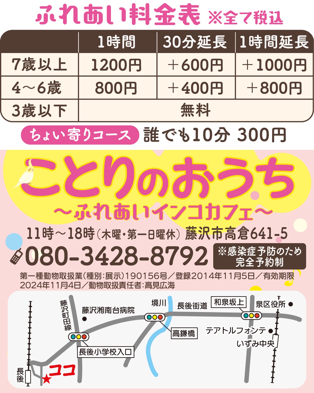 長後駅東口からすぐの「ことりのおうち」はインコやオウムなど約20種類の小鳥とふれあえるお店。人懐こくて可愛いその姿にリピーターが続出中。最短10分、300円から利用できるのも嬉しい。そのほか店内では鳥グッズや生体販売も行っている。
