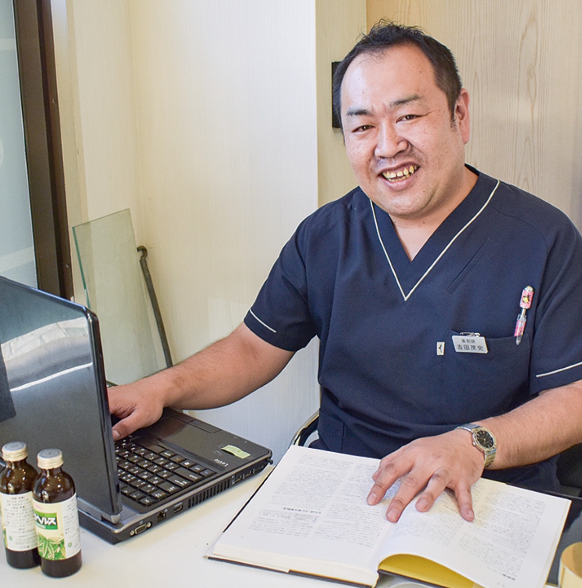 長後街道・立場交差点近く、エメラルドグリーンの看板の「吉田薬局」は、薬剤師や管理栄養士による漢方相談・健康相談に力を入れている。