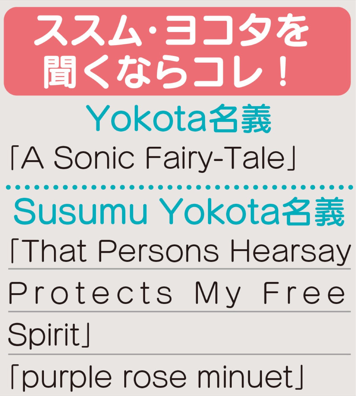 その方がススム・ヨコタ氏。当時高校生だった私は、池袋のWAVEでそのCDを購入し、繊細ながらも、激しく美しい音に衝撃を受けたのでした。後にススム・ヨコタ氏の音楽はハウスやアンビエントミュージックへ向かい、とくにヨーロッパで高く評価をされていきます。日本のレーベルからも多くの音源がリリースされています。