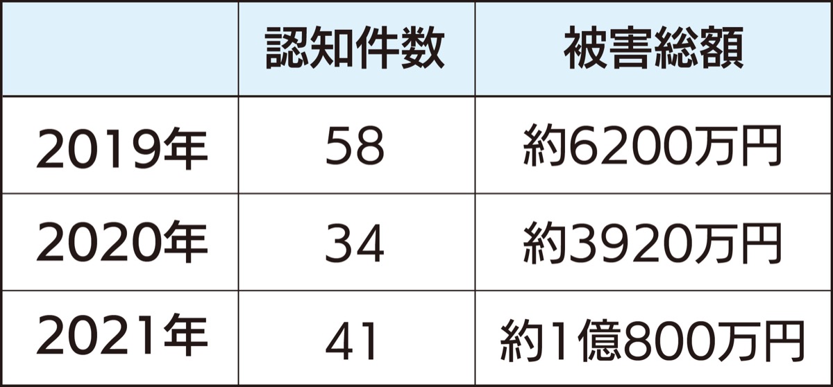 泉警察署管内で昨年被害が確認できた特殊詐欺は41件。2020年の34件と比べ7件増えているが、それ以上に被害総額が前年比約2・75倍と急増している。
