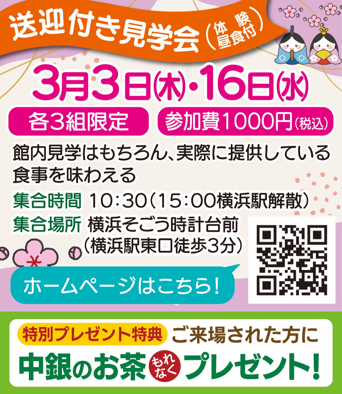 3月3日・16日 送迎付き見学会(体験食事付)
