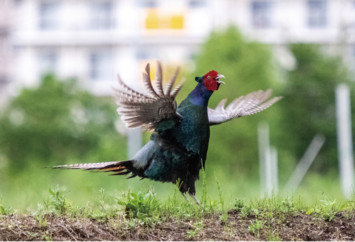 昨年5月に本紙の記事で毎朝キジを撮影している区民がいることを知り、キジも撮り始めた。「自宅にいるとキジの鳴き声が頻繁に聞こえてくる」と言い、「人の暮らしのすぐ隣、あるいはその中で健気に力強く生きている様子」を写した。