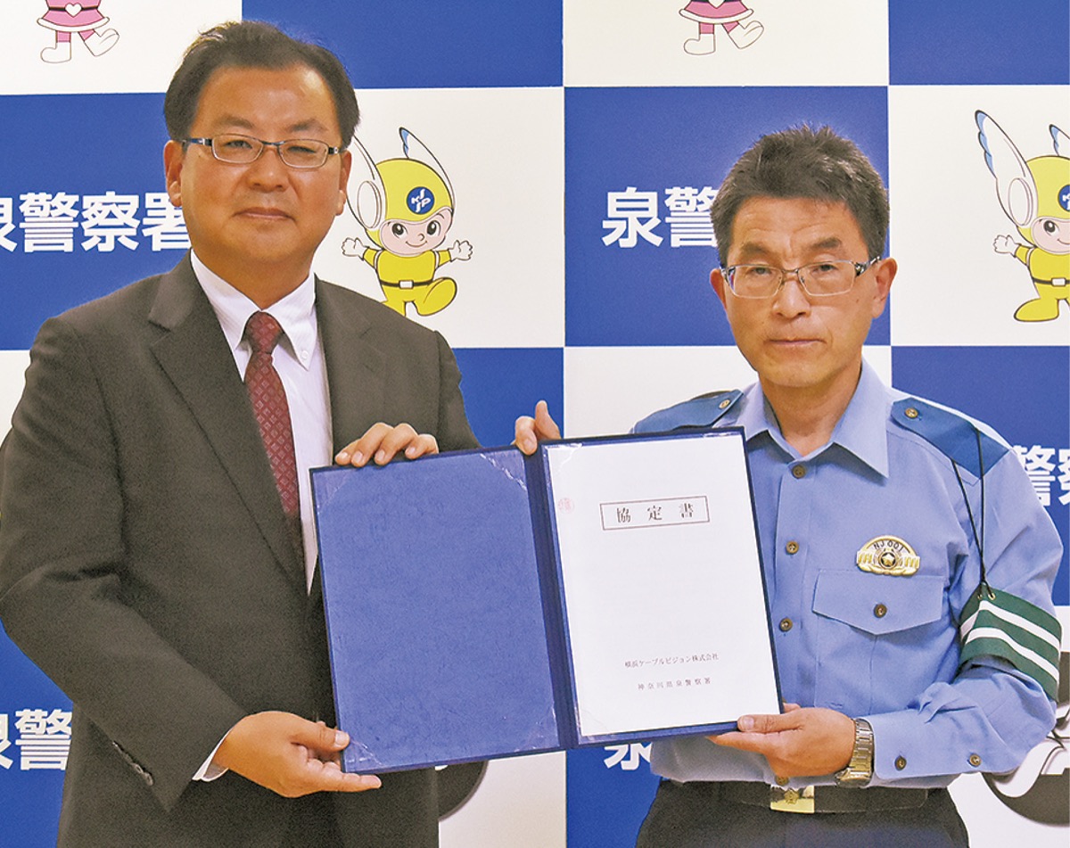 泉警察署と横浜ケーブルビジョン株式会社(YCV)=本社・保土ケ谷区=は9月30日、「地域安全に関する協定」を締結した。