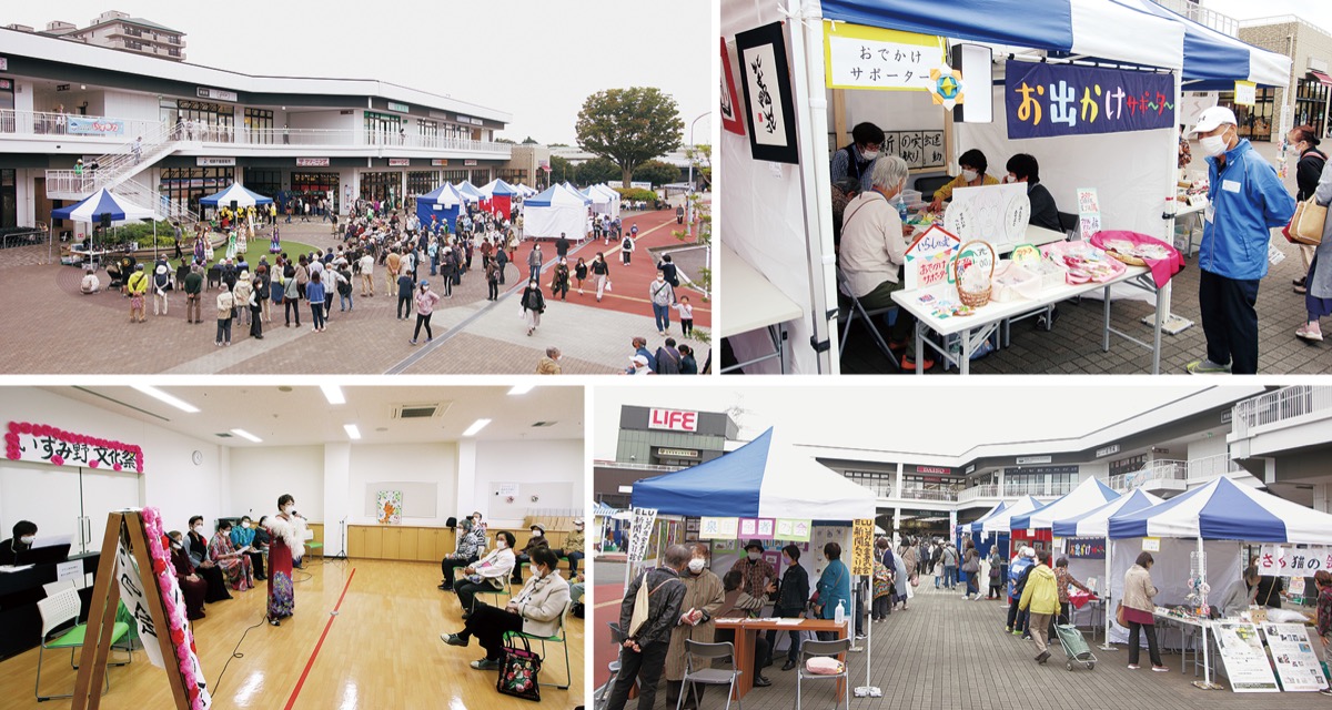 いずみ野駅北口の相鉄ライフ前広場と、いずみ野地域ケアプラザで10月22日、和泉北部連合自治会(中山懐利会長)が主催する「いずみ野文化祭」が初開催され、多くの人でにぎわった。