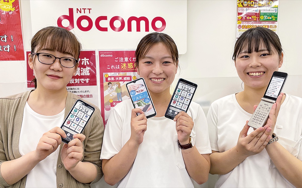 「現在ガラケーを使用しているなら、この機会にスマホへの乗り換えがおすすめです」と話すのはドコモショップ立場店スタッフ。立場駅から徒歩1分の同店では、ガラケーから乗り換えを検討中の人向けに、3G電波終了後も使えるスマホF-51Bを「本体一括1円」(契約変更の場合別途契約事務手数料3300円)で期間限定、台数限定で用意している。