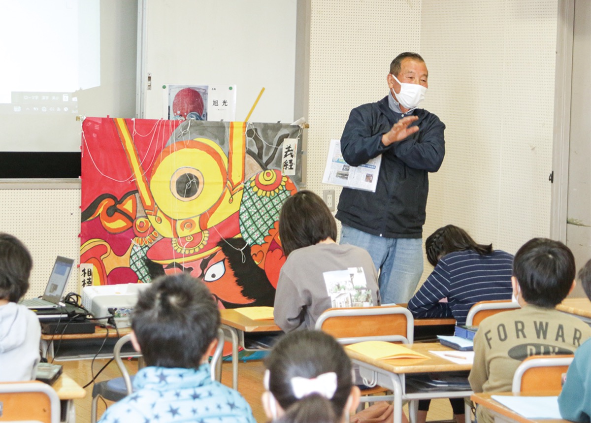 授業ではまず、保存会のメンバーが同会の活動や凧について説明。清水会長は「米作りの農家は雨が多くなる6月から忙しくなるので、5月の時間のある時にみんなで楽しんでいたのがもともと。それで端午の節句に揚げる伝統にもなった」と話した。