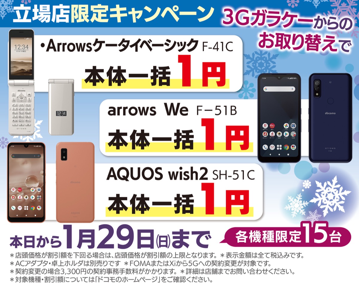 ドコモショップ立場店 本日から1月29日(日)まで各機種15台限定