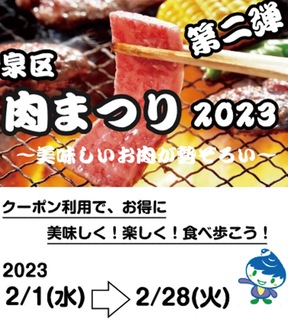 スマートフォンでクーポンを取得し、泉区内の飲食店が提供する「肉料理」を食べ歩く企画「泉区肉まつり」の第2弾が2月1日(水)から28日(火)まで開催される。