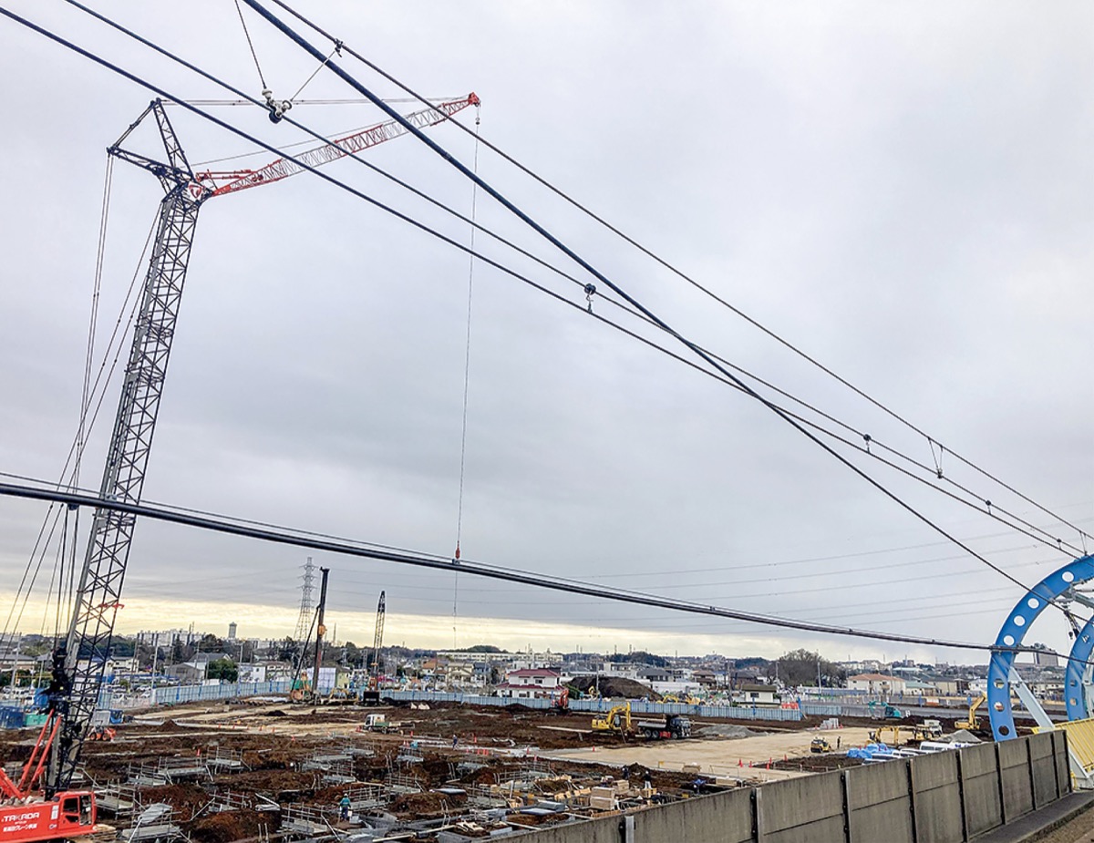 北側部分には大型クレーン車の姿もあり