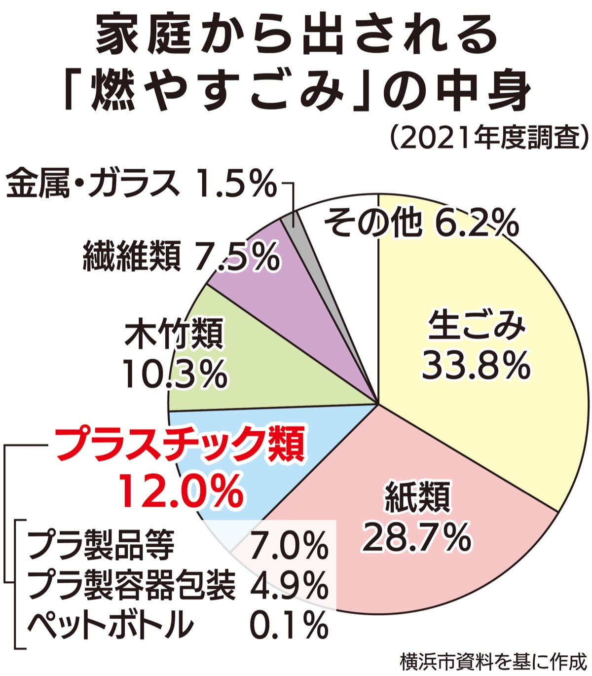 一方、バケツや歯ブラシ、ハンガーなどプラでできた製品は、生ごみと同じ「燃やすごみ」の扱いだ。市の21年度調査では、燃やすごみの中に分別対象ではないプラ製品等が7%含まれていた。