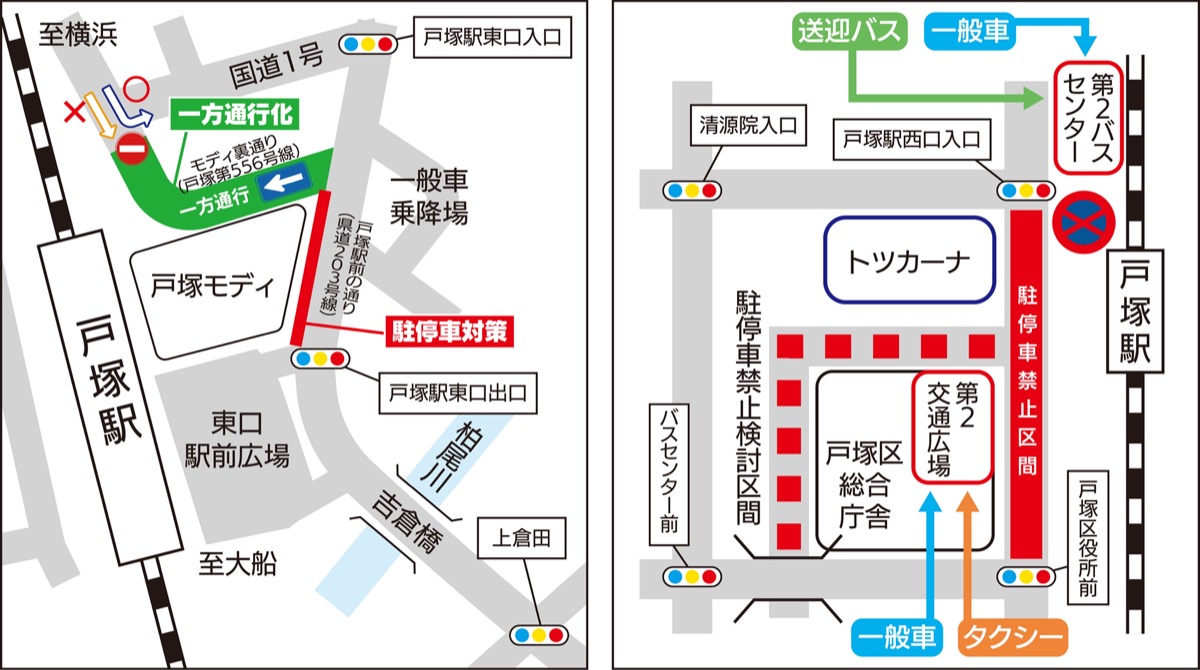 区担当者は「これらの対策を実行することにより、安全で魅力があり、行き来がしやすい戸塚駅にしていきたい。理解と協力を」と話している。