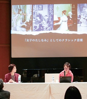 アメリカ研究を専門とする吉原教授は「音楽におけるジェンダーに関してピアノは象徴的で、女子のたしなみ、教養とされてきた。ただ音楽家は男性ばかりで、指揮者も難しい」と指摘。また「音楽は世界共通といわれる一方でジェンダーがある。多様な人が参入できるよう、やはり教育が重要」と語った。