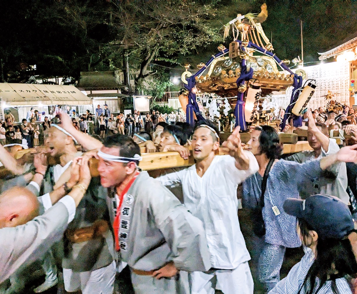 御霊神社(小澤恵一宮司/中田北3の42の1)で9月24日、例大祭が執り行われ、4年ぶりに担ぎ手による神輿が地域を練り歩いた。