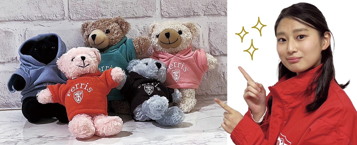 フェリスの大学祭ではここでしか手に入らないグッズも毎年人気を集めている。今年の新グッズはフェリスロゴのTシャツを着たぬいぐるみの「くまさん」(税込1800円/1日10個限定販売)。7号館2階の06教室では他にもフェリスグッズが購入できるので足を運んでみては。