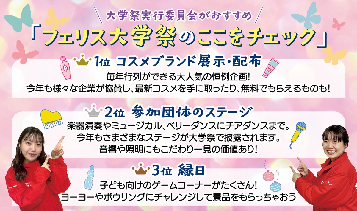 昨年は2日間で約4400人が来場したフェリス女学院大学の大学祭。コロナの影響で2020年は中止、21年はオンライン開催となり、昨年ようやく会場とYouTubeとのハイブリッド開催が実現した。今年はさらに飲食ブースも復活し、4年ぶりに従来のような大学祭が開かれる。