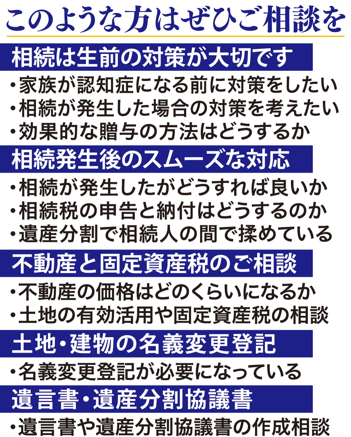 相続に関する悩みを、新横浜の専門家集団が連携し、迅速に対応-。