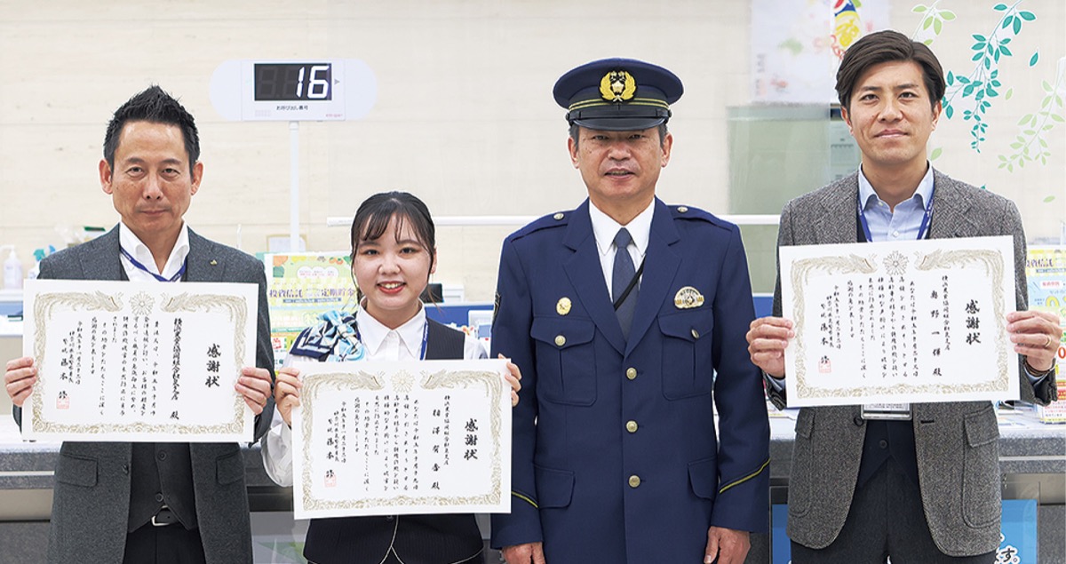 泉警察署はこのほど、特殊詐欺の被害を未然に防いだとしてJA横浜和泉支店(清水克悦支店長)と同店の従業員2人に感謝状を贈った。