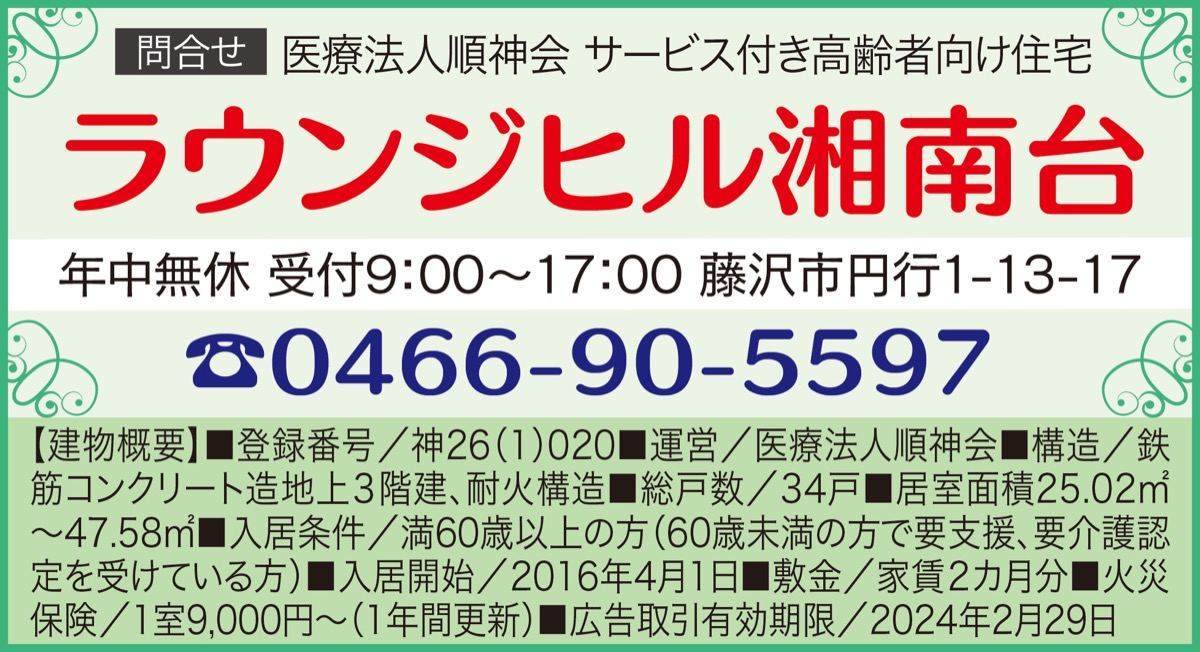 これまでの暮らしと変わりなく過ごせて、安心感がある――。医療法人順神会が運営するサービス付き高齢者向け住宅「ラウンジヒル湘南台」の入居者の声だ。60歳以上であれば、要介護度にかかわらず入居できる。