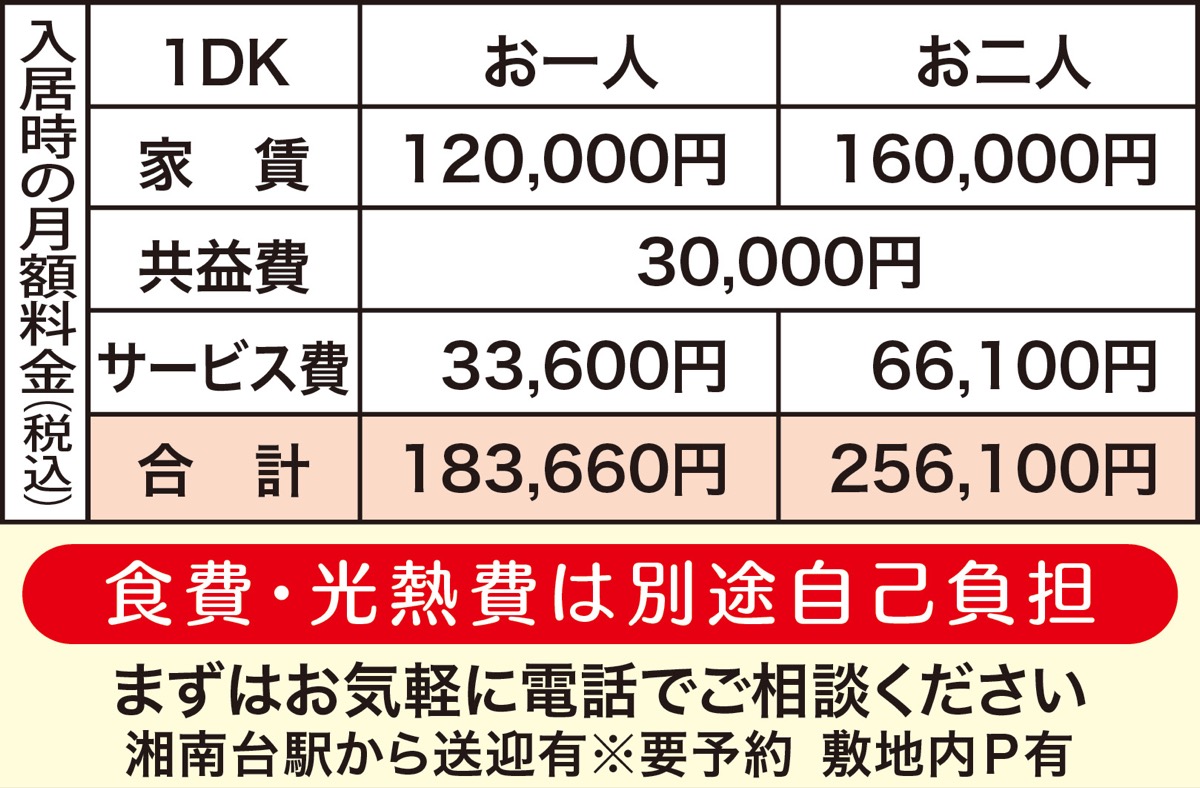 個室でありながら間取りは2部屋あり、リビングと寝室を分けた生活ができ、単身はもちろん夫婦での入居も可能。各部屋にキッチン・浴室を完備。外出・外泊は自由で家族はいつでも面会ができ、入居者の好きな食べ物を家族が持参して一緒に食べることも可能だ。