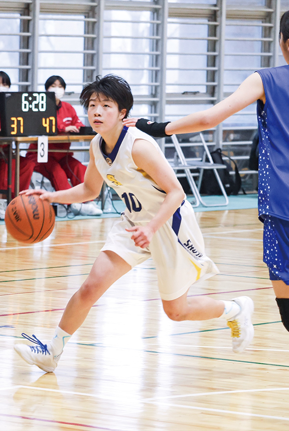 インサイドを支える2年の菅原恵美選手は「技術不足を感じさせられた。外からのシュートも打てるようにして、相手にとって怖い選手になりたい」と話す。
