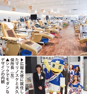 3月8日にはサッカーJ1の横浜F・マリノスの公式キャラクター「マリノスケ」の神奈川県献血広報大使の就任式が行われた。ホームゲーム時に献血バスを配車するなど、15年以上献血活動に協力している同クラブ。入口には選手の直筆サイン入りのユニフォームや写真を飾ったマリノスコーナーが設けられた。今後も献血の周知活動などを行っていくという。