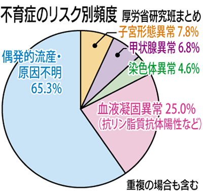 不育症は流産や死産などを2回以上繰り返すケースを指す。厚生労働省研究班の調査によると、妊娠歴のある35歳から79歳の女性のうち、2回以上流産した人が4・2%おり、全国的には妊娠する人のうち、毎年3万人は不育症の可能性があるとしている。