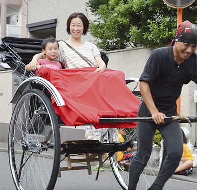 恒例の人力車は今回も人気で、珍しい体験に喜ぶ親子連れの姿が目立った。このほか、商店街のスナック静香には演歌歌手らが登場。多彩なステージに大いに盛り上がっていた。