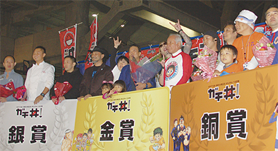 頂点の金賞に輝いたのは、鶴見区の重寿司「天然本マグロの合わせ丼」。予選14位通過ながらも決勝では総投票数6931票の一割を超える797票を獲得した。同店の岩澤則之さん(66)は、「スタッフに恵まれたことが一番」と笑顔で語った。娘で2代目の相澤亜香根さん(34)は「天然の本マグロが高い評価を得たのでは」と話していた。