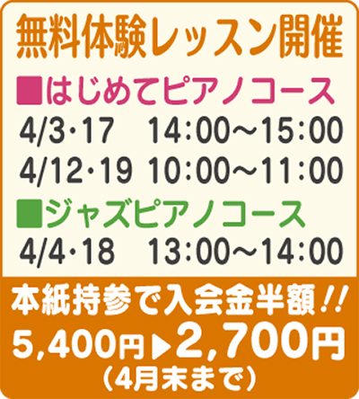 両手で軽やかにピアノを弾きたい――。そんな夢を実現できるヤマハ音楽教室「ハマヤ楽器」東戸塚センター(東戸塚駅徒歩5分)の大人向けピアノ教室が、好評につき5月から新規グループレッスンを開講する。