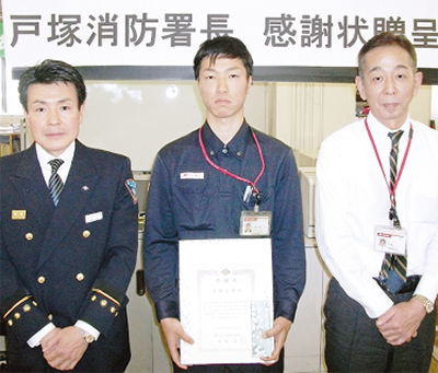 迅速な救命措置により男性の一命をとりとめたとして、戸塚消防署(坂本浩署長)は4月23日、泉郵便局員の高橋直輝さんに感謝状を贈った。