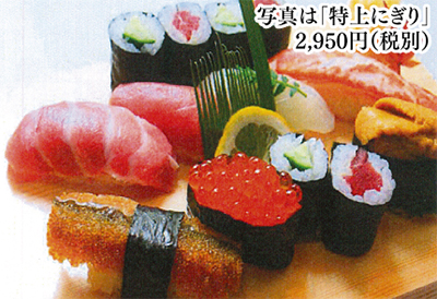 おススメは「にぎり」「刺身」「丼」など。「にぎり」なら「並/赤身入り、1600円」「上/中トロ入り、1900円」「特上/中トロ・大トロ入り、2950円」。「にぎり」にはお椀、デザートがサービス。また「鉄火丼/1900円」もあり、刺身や本マグロのみの「にぎり」のオーダーも可能。表記は全て税別。この本マグロは2月末位まではありそうだが来店前に確認を。