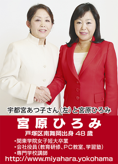 そしてこのたび、みなさんの声を市政に反映する生活者の政治を、戸塚の地から再び発進させるため、元ネットワーク横浜市会議員宇都宮あつこさんからバトンを受ける決意をしました。