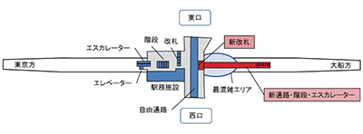 東戸塚駅は、ラッシュ時などにはホーム上の一定の場所に利用客が滞留し危険な状況となりますが、この計画が実現されれば、人の滞留が分散され安全につながると期待されます。