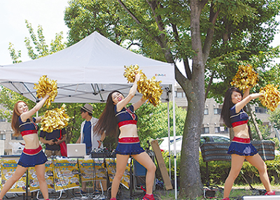 戸塚東口商店会主催の「真夏の歌フェス」が7月26日、コンフォール上倉田で開催された。ストリートライブではシンガーソングライターkaho*さんが歌い、商店会による地元食材の販売やゲームなどが行われ、賑わいをみせた。