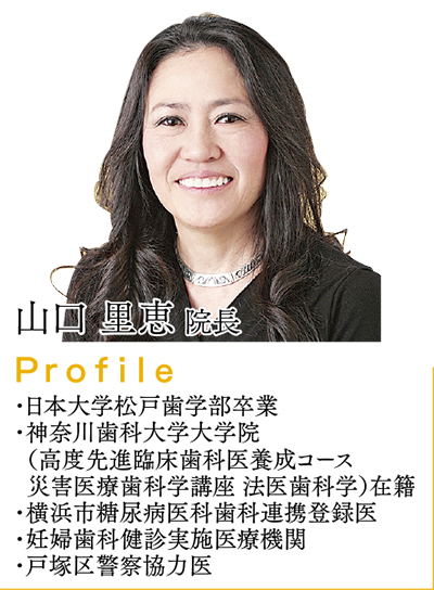 「どこまで患者さんの人生と向き合えるか」。優しくそう語るのは、父が移転開業した八巻歯科医院を継いで9年の山口里恵院長。