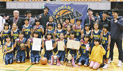 戸塚ミニバス女子は戸塚小学校の2年生から6年生までの21人のチームで、スローガンは「最後まであきらめない」。長所はディフェンスの強さや、パワーバランスの良さだそう。課題はメンバーの平均身長が低く、おとなしいところが課題だったが、春に「楽しくバスケをするだけではない勝てるチームを目指す」と意識を変えたことから、成長してきた。同チームの井崎拓美監督は「様々な大会や練習試合にも積極的に参加し、実力を積めたことが勝因」と話した。また同クラブ・キャプテンの河村さくらさん(小6)は「ここまで来られたのは、指導者・お父さん・お母さん・戸塚チームの3年生のおかげ」と勝利に対して感謝の言葉を口にした。