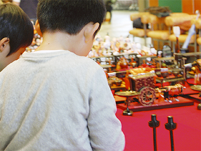 飾られたひな人形は、多くが寄付とのことで、年々増えているそう。参加した児童らは触れる機会の少ない人形を限られた場所に工夫して配置しながら、ボランティアとの異世代交流を楽しんだ。