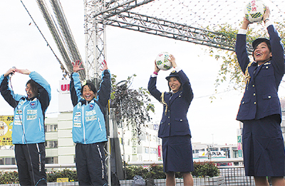 また戸塚区を拠点とする女子サッカーチーム・ニッパツ横浜FCシーガルズから、新井翠選手、橘麗衣選手、田中景子選手、山本絵美選手が参加。新井選手と橘選手は一日警察官を務め、事故防止を訴えた。
