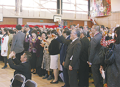 2017年戸塚区賀詞交換会が1月5日、戸塚小学校体育館で行われ、各自治会町内会関係者をはじめ、区内で活動する団体、企業の代表者ら約500人が参加した。
