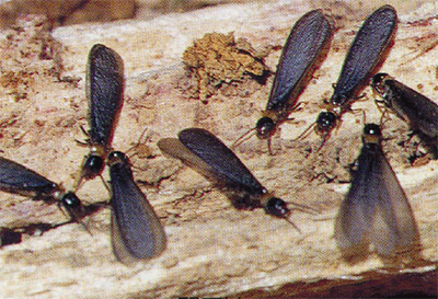「床下にいるシロアリのごく一部が羽アリとなって飛び立ちます。もし見かけたら、すでに約3年前から床下に住みつき、被害が進行していると考えて下さい」と語るのは、シロアリ駆除歴30年の(株)明誠(戸塚区汲沢町)の佐藤社長。羽アリの姿は3〜4日ほどで消えるが、安心は禁物。羽アリになるのは群れ全体の5%に過ぎず、床下にはまだ大量のシロアリがいるはずだからだ。